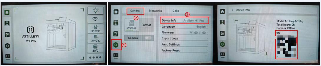 You can view the original SN on the printer screen or by scanning the QR code on the printer body.