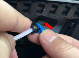 First, fit the PTFE connector assembly (to be added) into place, inserting it in the specific direction shown in the diagram. Then, thread the PTFE tube through and plug it in securely.
