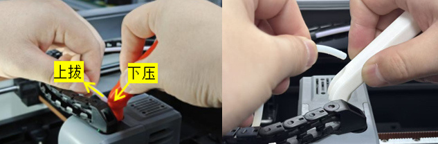 Use the PTFE tube disassembly tool to take down the PTFE tube, then remove the four PTFE tube clips in sequence, and finally pull out the PTFE tube.