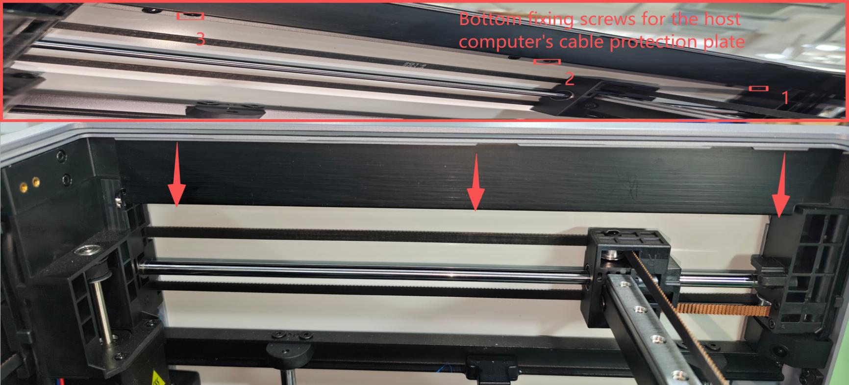Use an H2.0 hex wrench to remove the M3*8 flat circular head sealing plate screws from the bottom box. As shown: