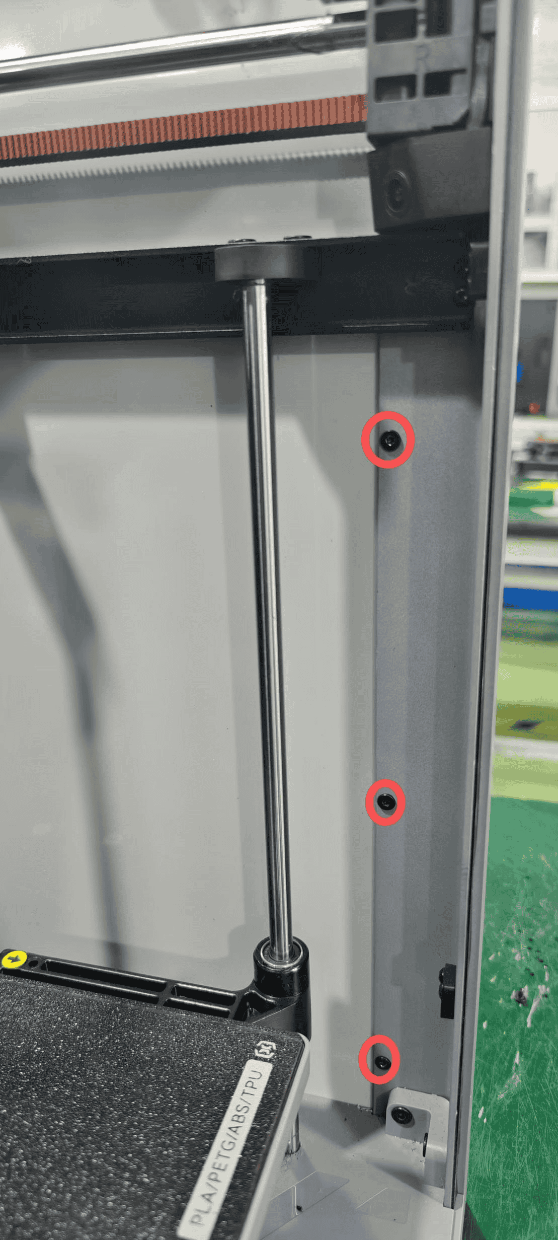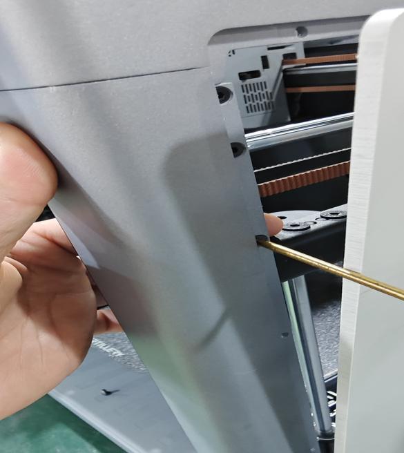 Use an H2.0 hex wrench to remove the 3 M3*5 flat circular head sealing plate screws from the right front door profile. As shown: