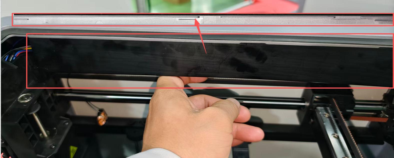 1. Install the guard plate into the slot on the right edge of the top frame. As shown in the figure:
