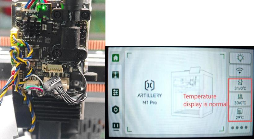 1. If the value decreases (parameter: 0 V - 0.46 V), it indicates the mainboard of the host controller is damaged during powered operation — go to the official site https://www.artillery3d.com/collections/spare-parts-for-m1series to purchase an MC board (main control board) to fix the issue.