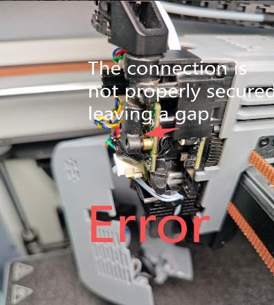1.After replacing with a new tool head small board, if the temperature display still shows “0” and mcu ‘THR’ — please check whether the cable terminals are properly connected. Figure a is correct. Figure b shows the cable connector not seated properly, leading to poor contact and errors.