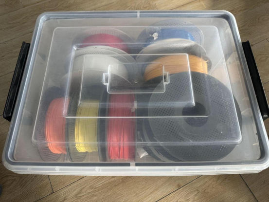 TPU filament is prone to moisture absorption, and moisture will affect the pri nting quality. To avoid this, it is recommended to store the filament in an en vironment with a humidity below 20% RH. Use a storage box for storage and place a desiccant in the box, preferably a desiccant, to keep the filament dry.