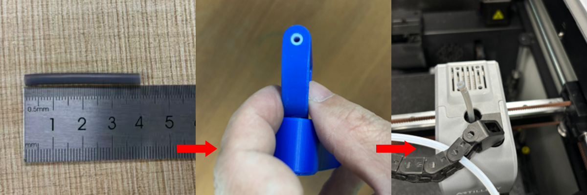 When using TPU 85A and 90A materials on the M1PRO. Please feed directly from above the tool head.